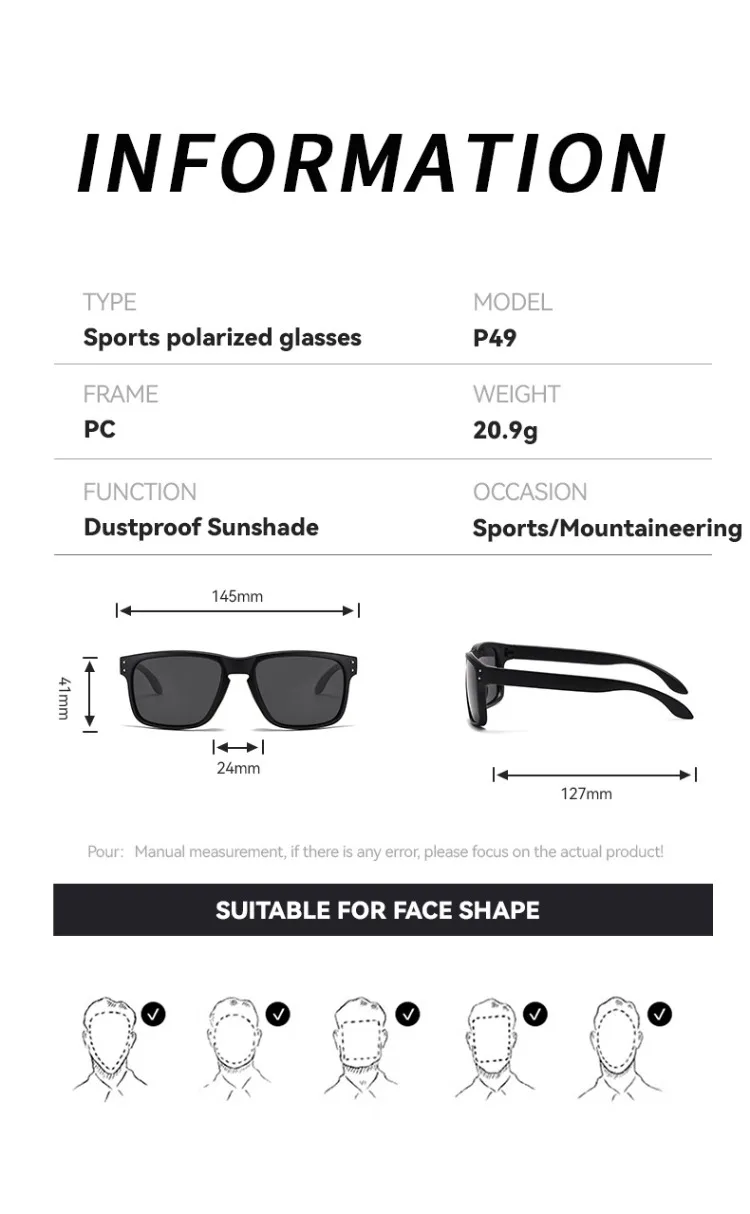 • Polarized lenses :Reduces glare and enhances clarity, making it easier to see in bright sunlight. • TR90 frame material :Lightweight and durable, ensuring long-lasting use. • UV400 protection :Blocks harmful UVA and UVB rays, protecting your eyes from long-term damage. • Square frame design :Classic and timeless, suitable for…