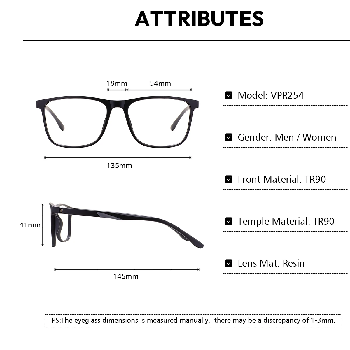 I recently ordered a pair of tr90 eyeglasses from this store, and i am very satisfied with my purchase. The frame size was perfectly made according to the prescription i provided, so the fit is exactly right for my face. The glasses feel very comfortable to wear for long hours, and they do not create any pressure points on the nose or behind the ears. The tr90 material is clearly of high quality – lightweight, flexible, and durable at the same time, which makes the glasses ideal for everyday use. I also appreciate that the lenses were made precisely based on the prescription details i entered, so my vision feels sharp and clear with no distortion. The seller did a great job in packaging, the item arrived safely with no scratches or damage. The overall quality exceeded my expectations considering the affordable price. I can confidently recommend this store and this tr90 frame to anyone looking for reliable prescription glasses. Excellent value for money, stylish design, and comfortable.